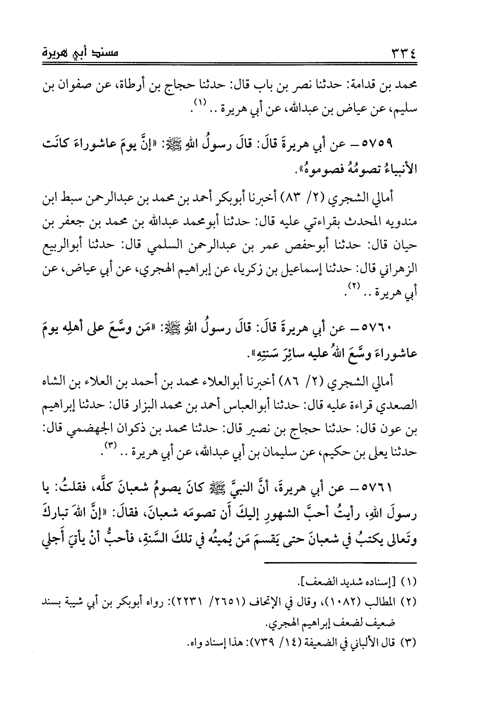 محمد بن قدامة: حدثنا نصر بن باب قال: حدثنا حجاج بن أرطاة، عن صفوان بن سليم، عن عياض بن عبدالله، عن أبي هريرة .. (¬1).