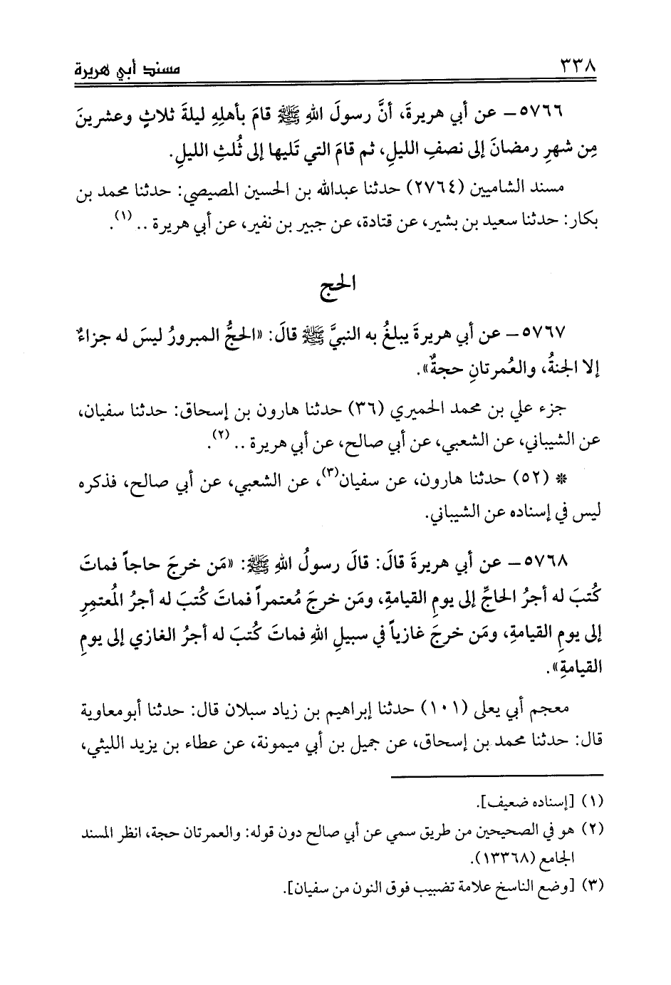 (¬2) هو في الصحيحين من طريق سمي عن أبي صالح دون قوله: والعمرتان حجة، انظر المسند الجامع (13368).