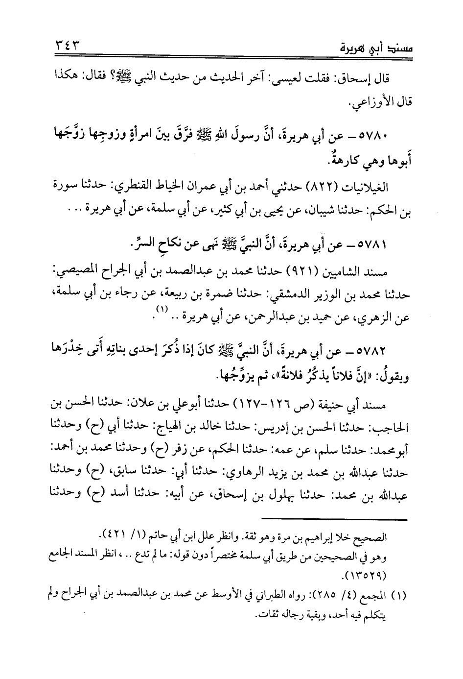 مسند أبي حنيفة (ص 126 - 127) حدثنا أبوعلي بن علان: حدثنا الحسن بن الحاجب: حدثنا الحسن بن إدريس: حدثنا خالد بن الهياج: حدثنا أبي (ح) وحدثنا أبومحمد: حدثنا سلم، عن عمه: حدثنا الحكم، عن زفر (ح) وحدثنا محمد بن أحمد: حدثنا عبدالله بن محمد بن يزيد الرهاوي: حدثنا أبي: حدثنا سابق، (ح) وحدثنا عبدالله بن محمد: حدثنا بهلول بن إسحاق، عن أبيه: حدثنا أسد (ح) وحدثنا