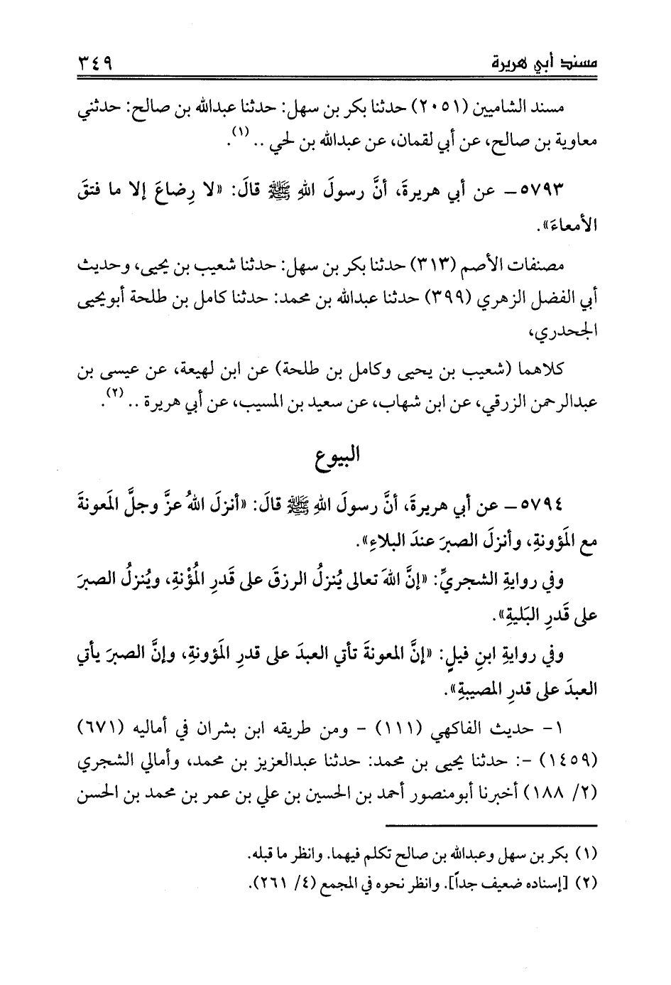 كلاهما (شعيب بن يحيى وكامل بن طلحة) عن ابن لهيعة، عن عيسى بن عبدالرحمن الزرقي، عن ابن شهاب، عن سعيد بن المسيب، عن أبي هريرة .. (¬2).