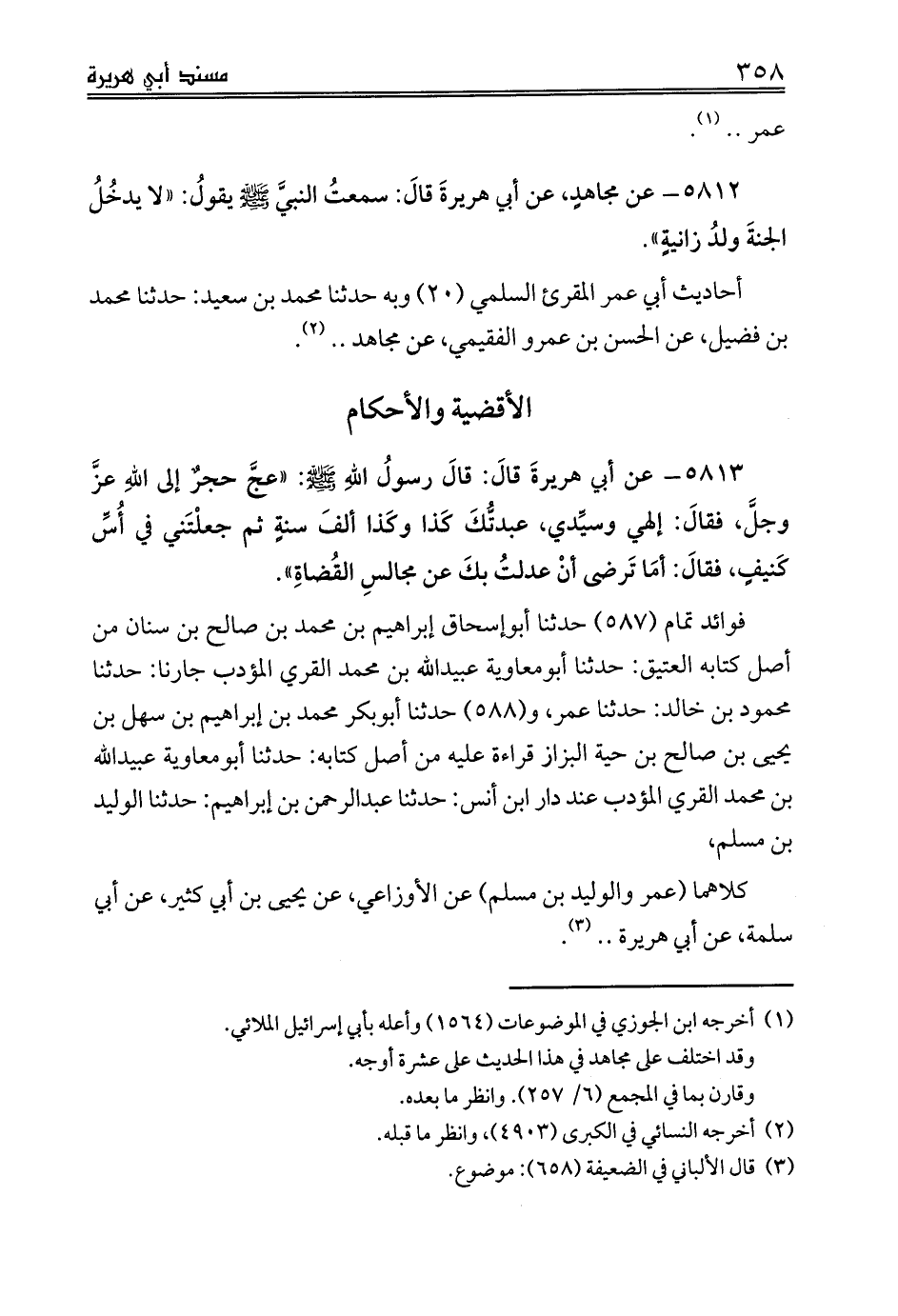 5812 - عن مجاهدٍ، عن أبي هريرةَ قالَ: سمعتُ النبيَّ صلى الله عليه وسلم يقولُ: «لا يدخُلُ الجنةَ ولدُ زانيةٍ».
