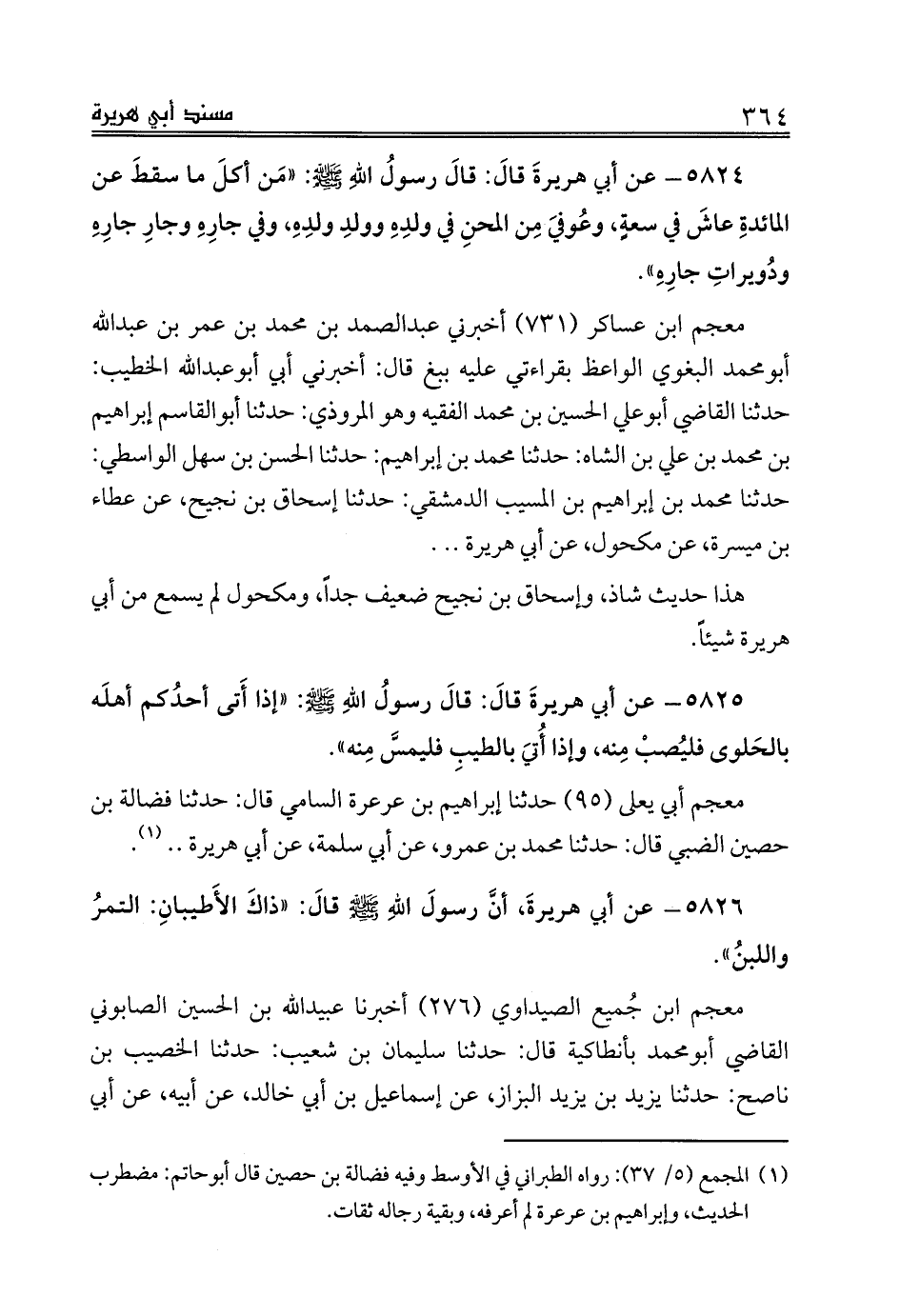 معجم أبي يعلى (95) حدثنا إبراهيم بن عرعرة السامي قال: حدثنا فضالة بن حصين الضبي قال: حدثنا محمد بن عمرو، عن أبي سلمة، عن أبي هريرة .. (¬1).
