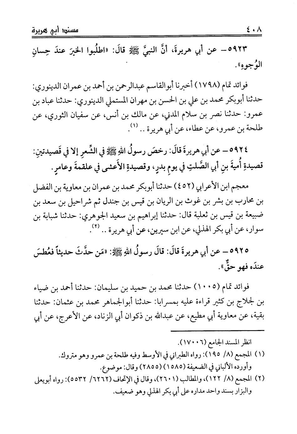 فوائد تمام (1005) حدثنا محمد بن حميد بن سليمان: حدثنا أحمد بن ضياء بن لجلاج بن كثير قراءة عليه بمسرابا: حدثنا أبوالجماهر محمد بن عثمان: حدثنا بقية، عن معاوية أبي مطيع، عن عبدالله بن ذكوان أبي الزناد، عن الأعرج، عن أبي
