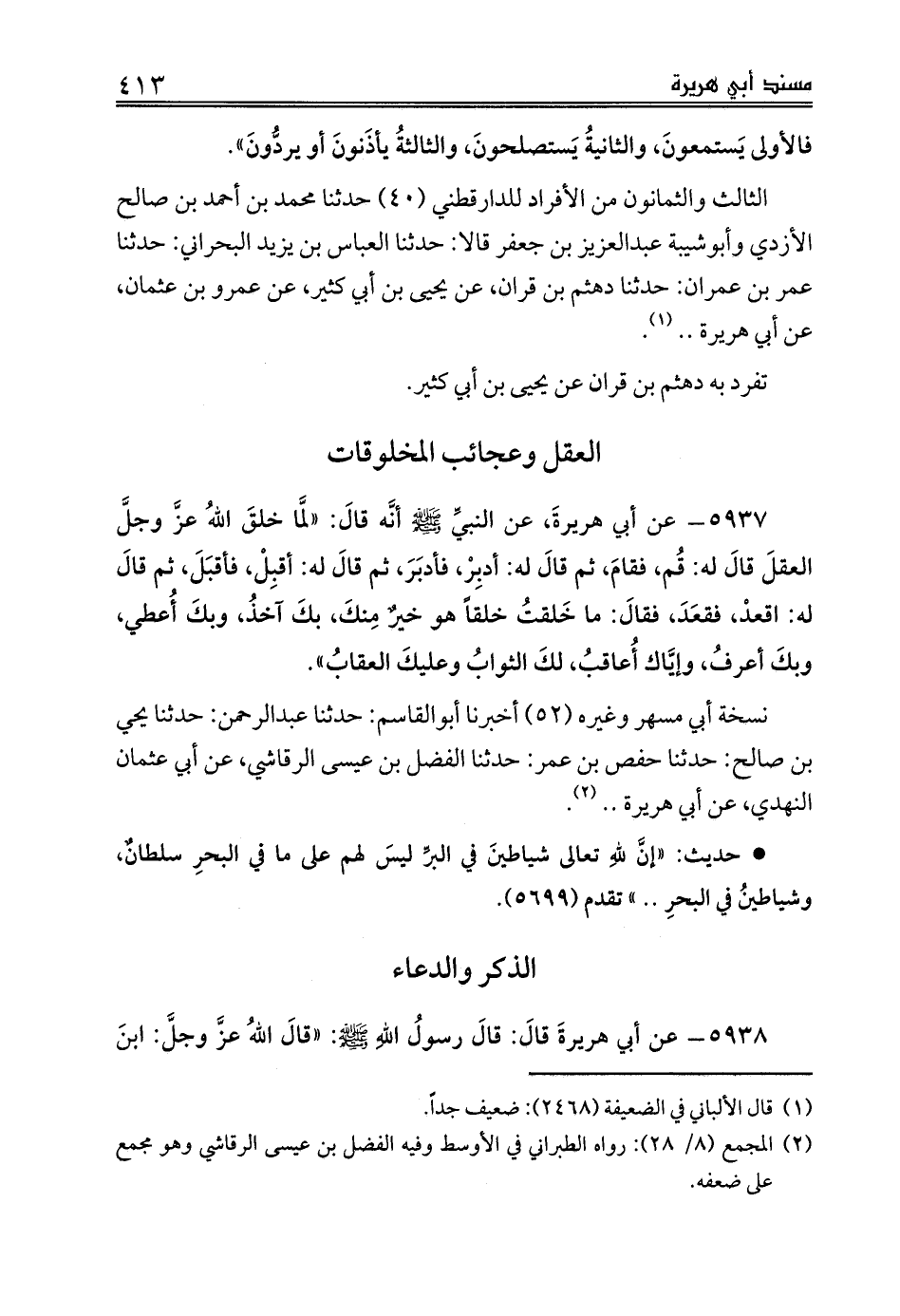 الثالث والثمانون من الأفراد للدارقطني (40) حدثنا محمد بن أحمد بن صالح الأزدي وأبوشيبة عبدالعزيز بن جعفر قالا: حدثنا العباس بن يزيد البحراني: حدثنا عمر بن عمران: حدثنا دهثم بن قران، عن يحيى بن أبي كثير، عن عمرو بن عثمان، عن أبي هريرة .. (¬1).
