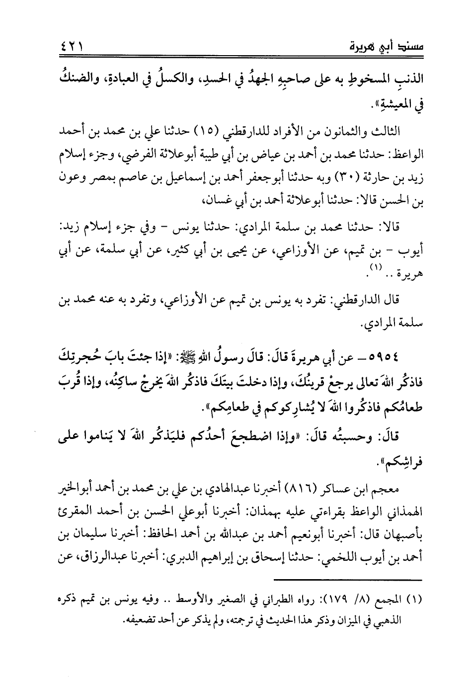 قالا: حدثنا محمد بن سلمة المرادي: حدثنا يونس - وفي جزء إسلام زيد: أيوب - بن تميم، عن الأوزاعي، عن يحيى بن أبي كثير، عن أبي سلمة، عن أبي هريرة .. (¬1).