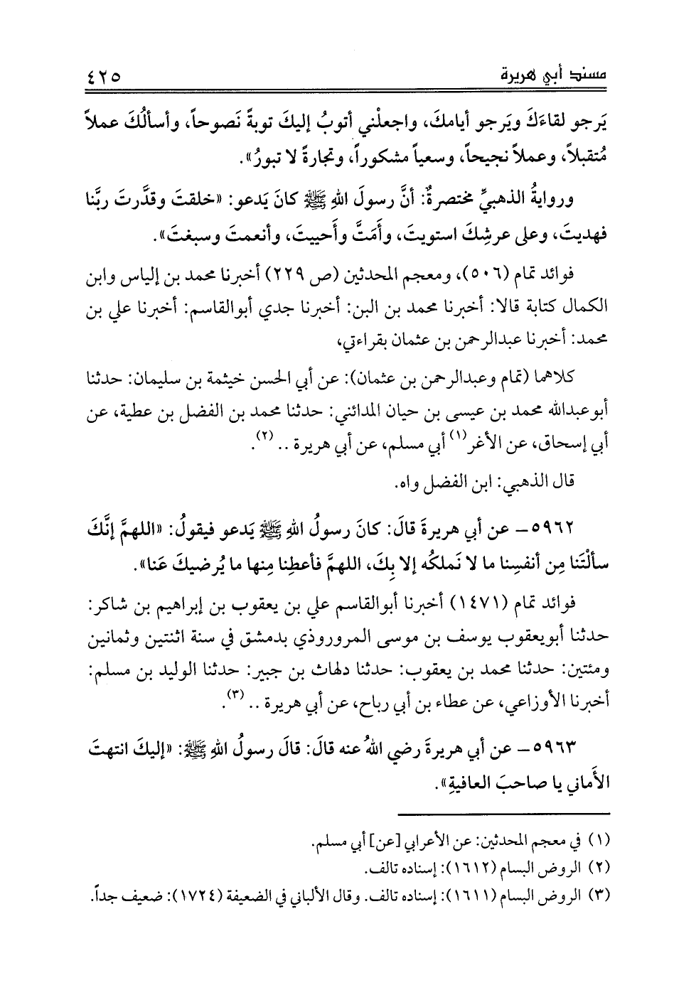5963 - عن أبي هريرةَ رضي اللهُ عنه قالَ: قالَ رسولُ اللهِ صلى الله عليه وسلم: «إليكَ انتهتَ الأَماني يا صاحبَ العافيةِ».