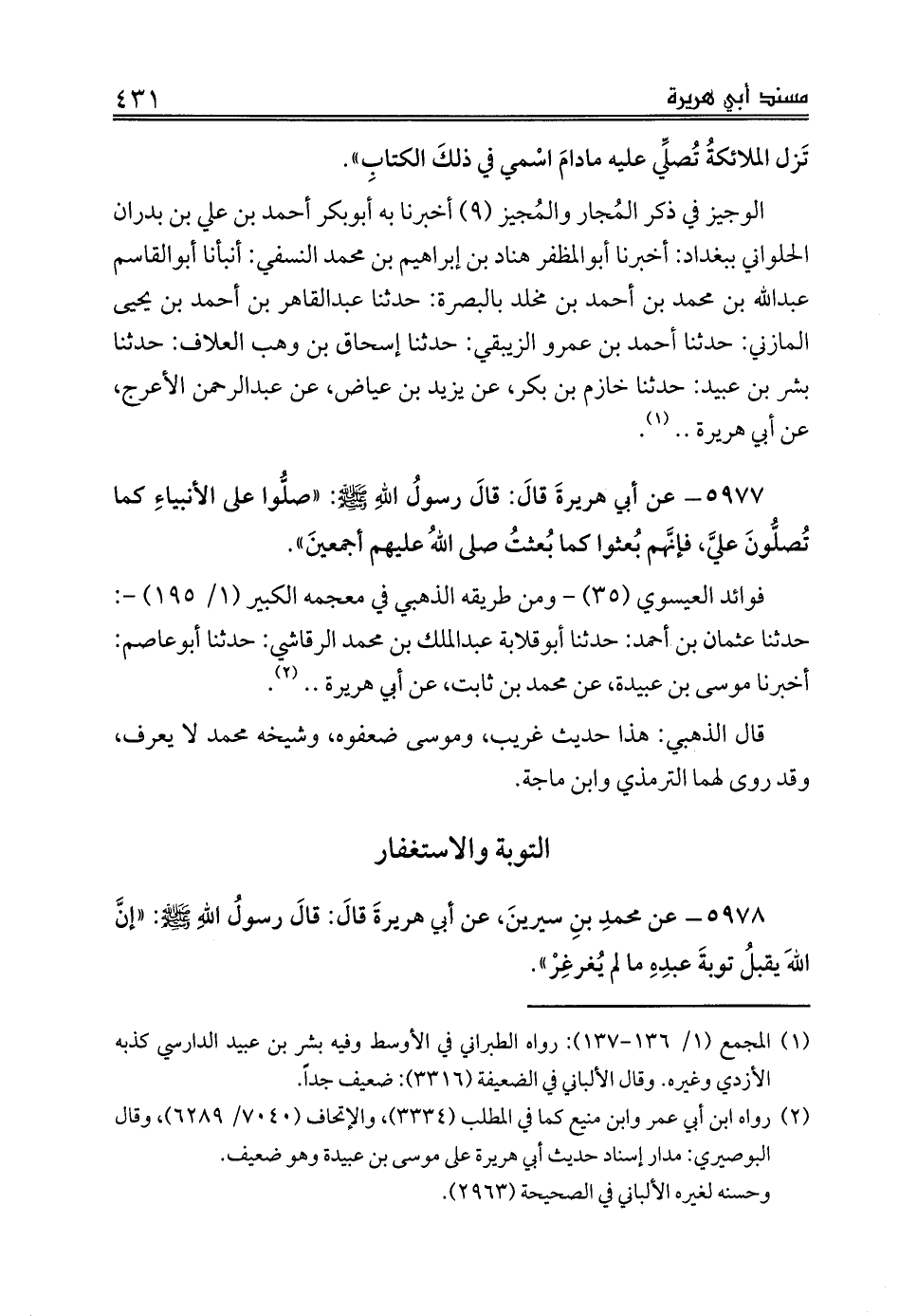 (¬2) رواه ابن أبي عمر وابن منيع كما في المطلب (3334)، والإتحاف (7040/ 6289)، وقال البوصيري: مدار إسناد حديث أبي هريرة على موسى بن عبيدة وهو ضعيف.