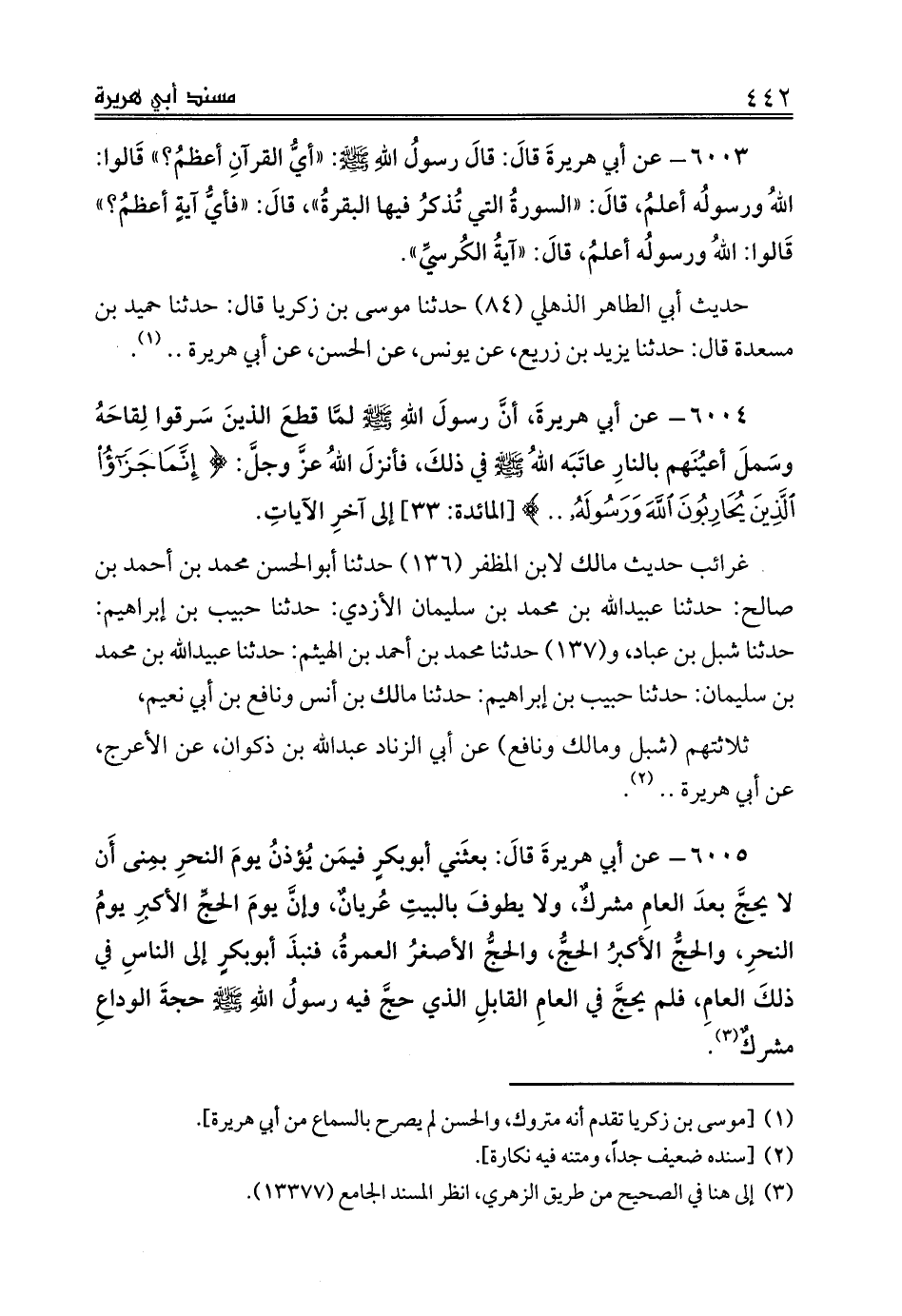 ثلاثتهم (شبل ومالك ونافع) عن أبي الزناد عبدالله بن ذكوان، عن الأعرج، عن أبي هريرة .. (¬2).