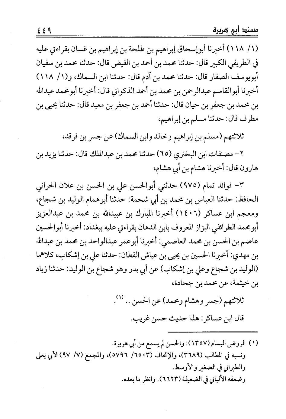 (¬1) الروض البسام (1357): والحسن لم يسمع من أبي هريرة.