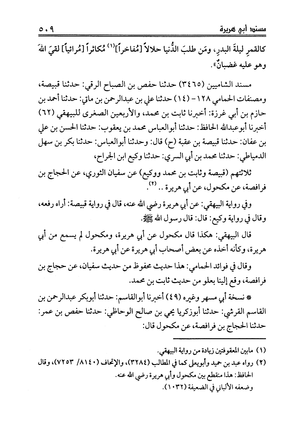 ثلاثتهم (قبيصة وثابت بن محمد ووكيع) عن سفيان الثوري، عن الحجاج بن فرافصة، عن مكحول، عن أبي هريرة .. (¬2).