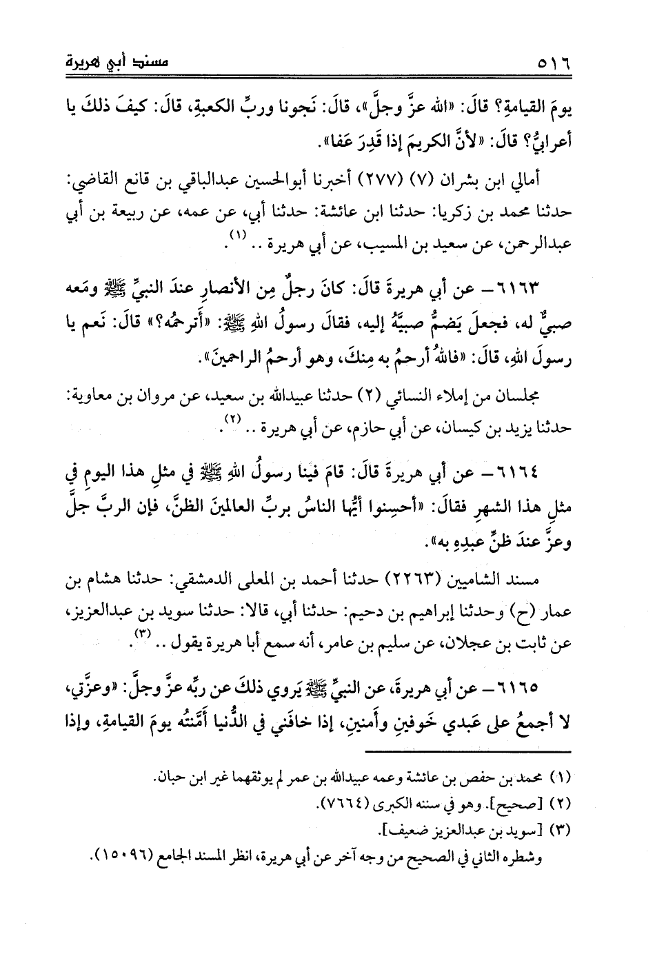 6164 - عن أبي هريرةَ قالَ: قامَ فينا رسولُ اللهِ صلى الله عليه وسلم في مثلِ هذا اليومِ في مثلِ هذا الشهرِ فقالَ: «أحسِنوا أيُّها الناسُ بربِّ العالمينَ الظنَّ، فإن الربَّ جلَّ وعزَّ عندَ ظنِّ عبدِهِ به».