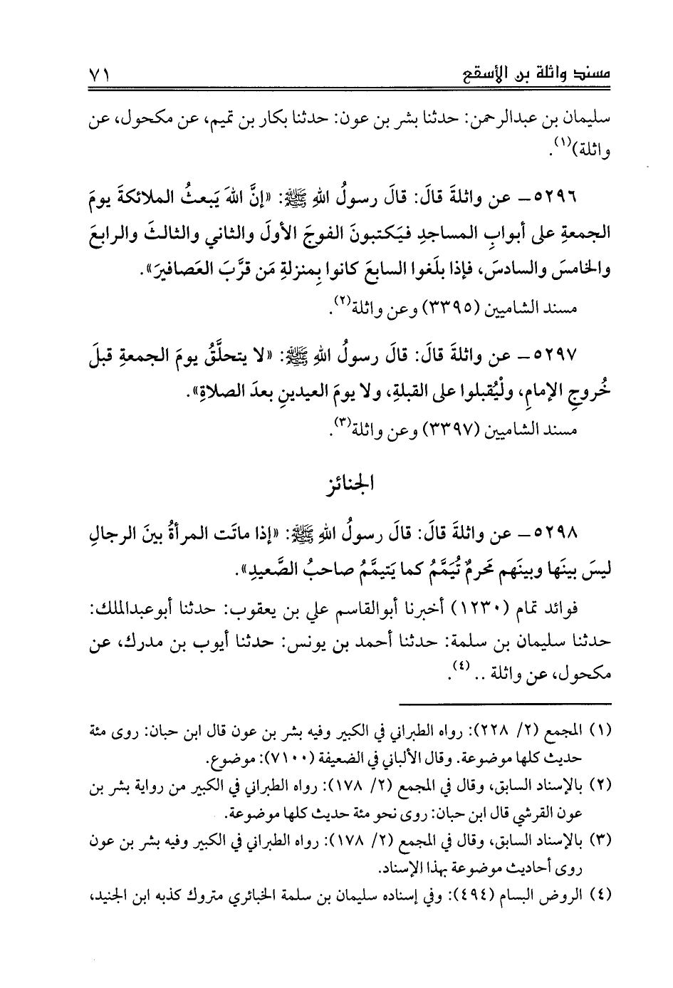 (¬4) الروض البسام (494): وفي إسناده سليمان بن سلمة الخبائري متروك كذبه ابن الجنيد، وأيوب بن مدرك متروك كذبه ابن معين.