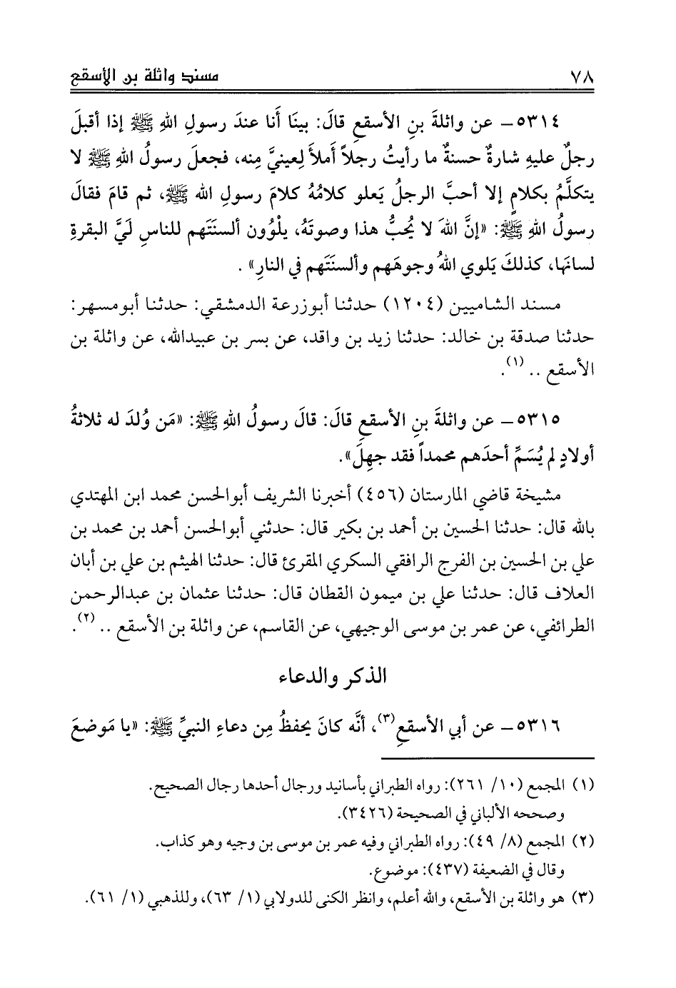 (¬3) هو واثلة بن الأسقع، والله أعلم، وانظر الكنى للدولابي (1/ 63)، وللذهبي (1/ 61).