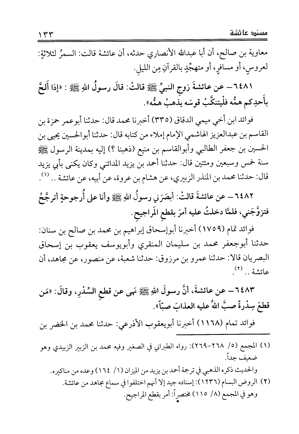 (¬2) الروض البسام (1236): إسناده جيد إلا أنهم اختلفوا في سماع مجاهد من عائشة.