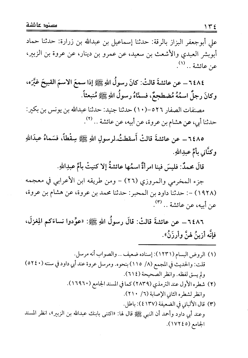 مصنفات الصفار 526 - (10) حدثنا جنيد: حدثنا عبدالله بن يونس بن بكير: حدثنا أبي، عن هشام بن عروة، عن أبيه، عن عائشة .. (¬2).