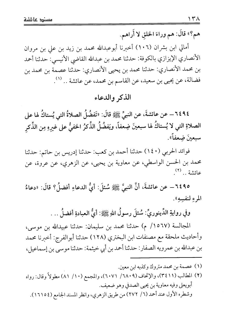 المجالسة (1567/ م) حدثنا محمد بن سليمان: حدثنا عبيدالله بن موسى، وأحاديث ملحقة مع مصنفات ابن البختري (128) حدثنا أبوالفرج: أخبرنا محمد بن عبدالله بن عمرويه الصفار: حدثنا أحمد بن أبي خيثمة: حدثنا موسى بن إسماعيل،
