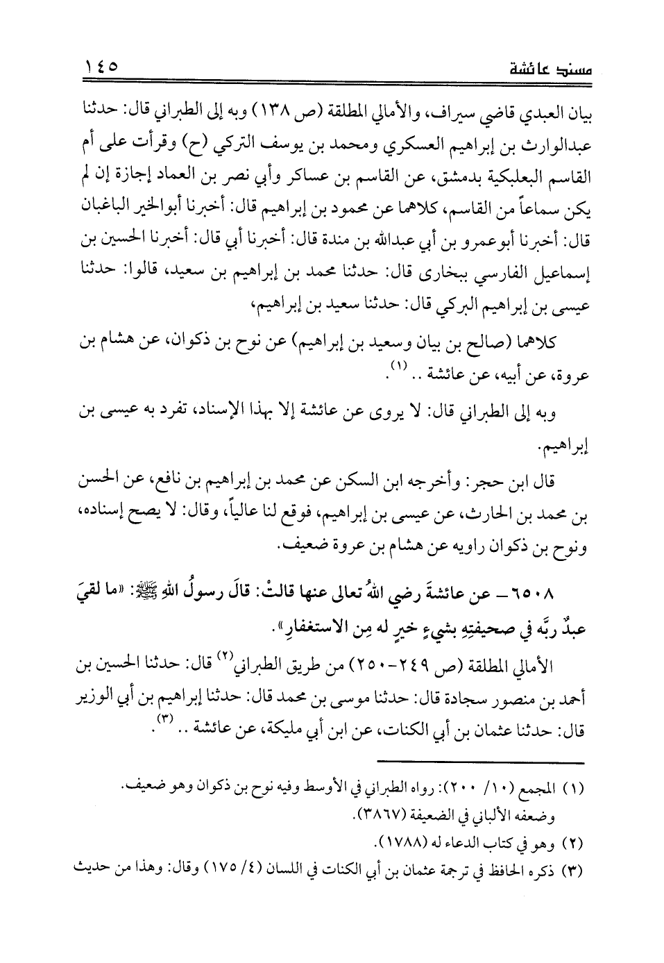 وبه إلى الطبراني قال: لا يروى عن عائشة إلا بهذا الإسناد، تفرد به عيسى بن إبراهيم.