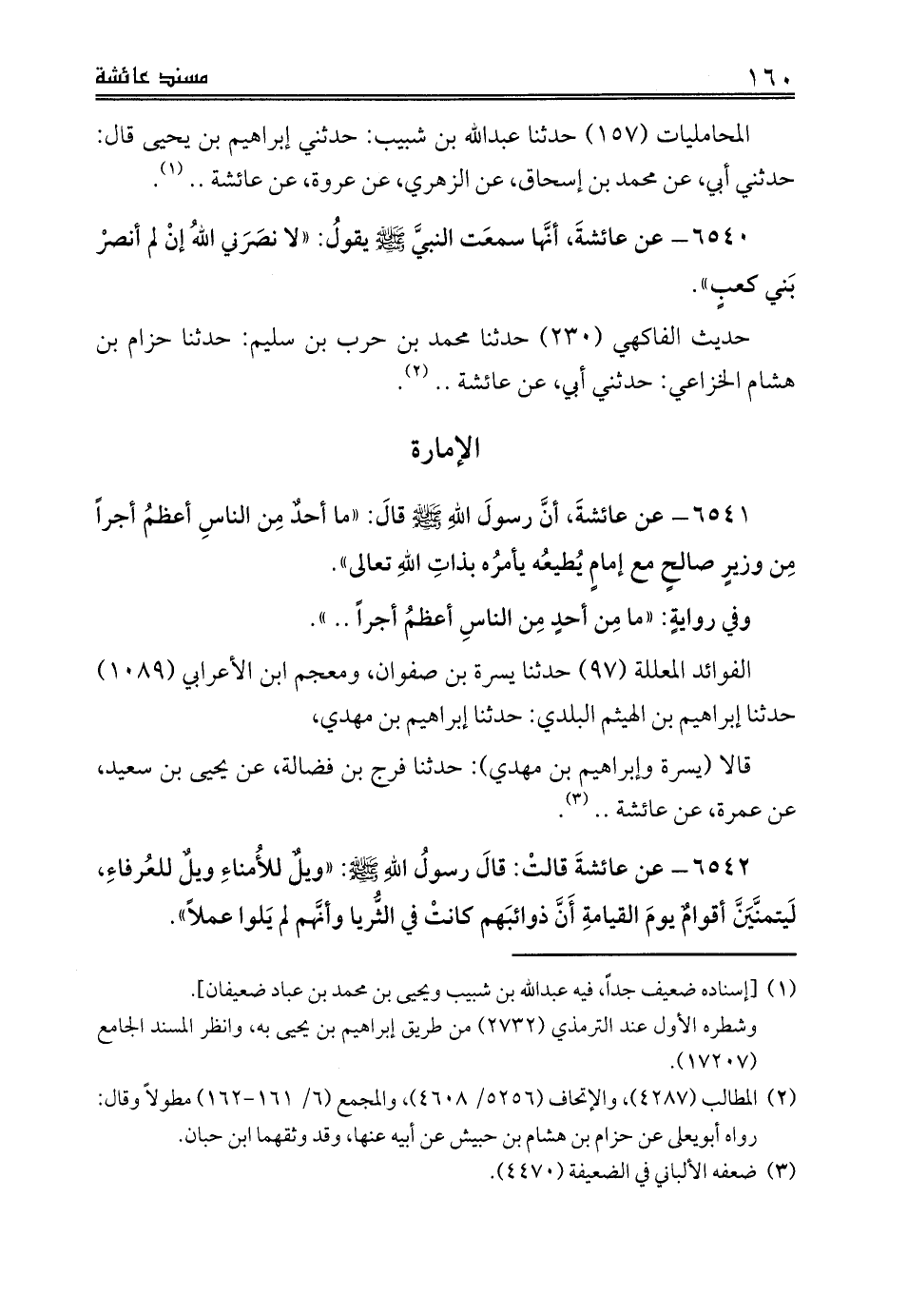6542 - عن عائشةَ قالتْ: قالَ رسولُ اللهِ صلى الله عليه وسلم: «ويلٌ للأُمناءِ ويلٌ للعُرفاءِ، لَيتمنَّيَنَّ أقوامٌ يومَ القيامةِ أَنَّ ذوائبَهم كانتْ في الثُّريا وأنَّهم لم يَلوا عملاً».