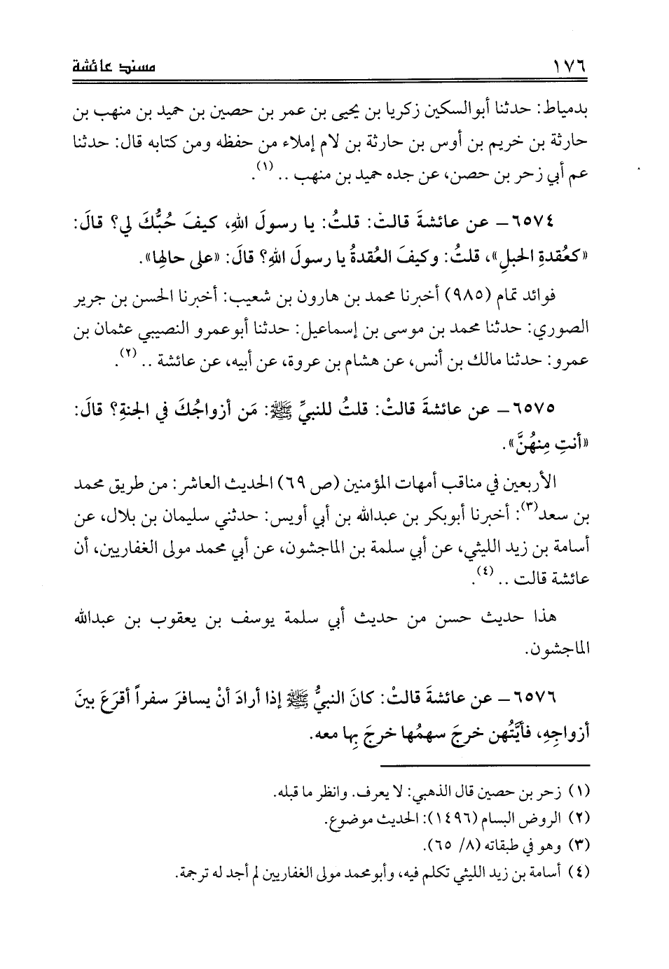 فوائد تمام (985) أخبرنا محمد بن هارون بن شعيب: أخبرنا الحسن بن جرير الصوري: حدثنا محمد بن موسى بن إسماعيل: حدثنا أبوعمرو النصيبي عثمان بن عمرو: حدثنا مالك بن أنس، عن هشام بن عروة، عن أبيه، عن عائشة .. (¬2).