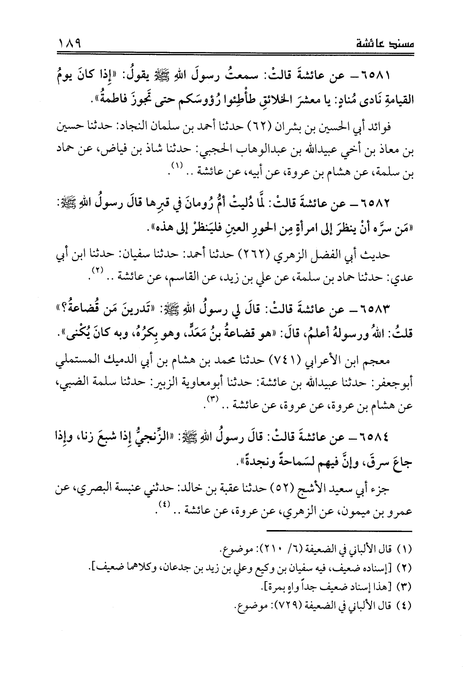 فوائد أبي الحسين بن بشران (62) حدثنا أحمد بن سلمان النجاد: حدثنا حسين بن معاذ بن أخي عبيدالله بن عبدالوهاب الحجبي: حدثنا شاذ بن فياض، عن حماد بن سلمة، عن هشام بن عروة، عن أبيه، عن عائشة .. (¬1).