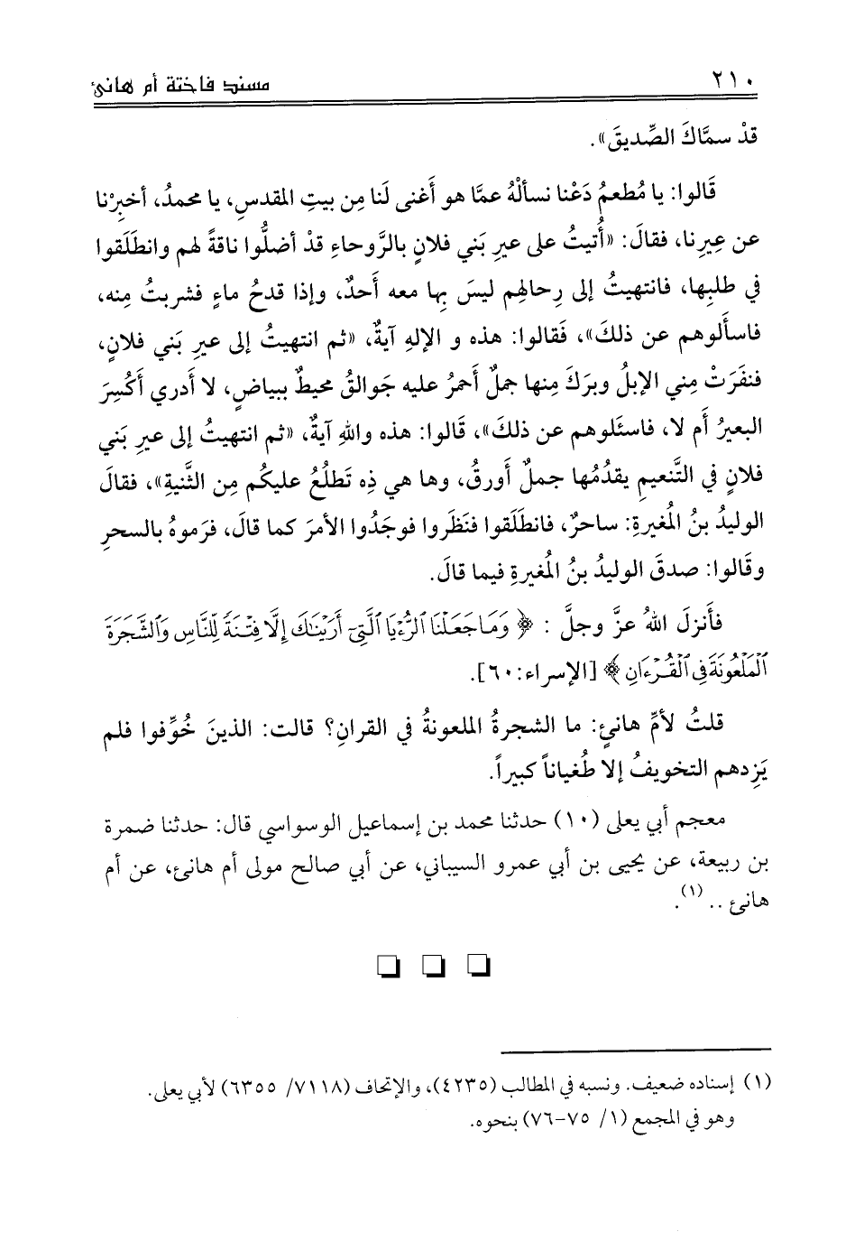 قلتُ لأمِّ هانئٍ: ما الشجرةُ الملعونةُ في القرانِ؟ قالت: الذينَ خُوِّفوا فلم يَزِدهم التخويفُ إلا طُغياناً كبيراً.