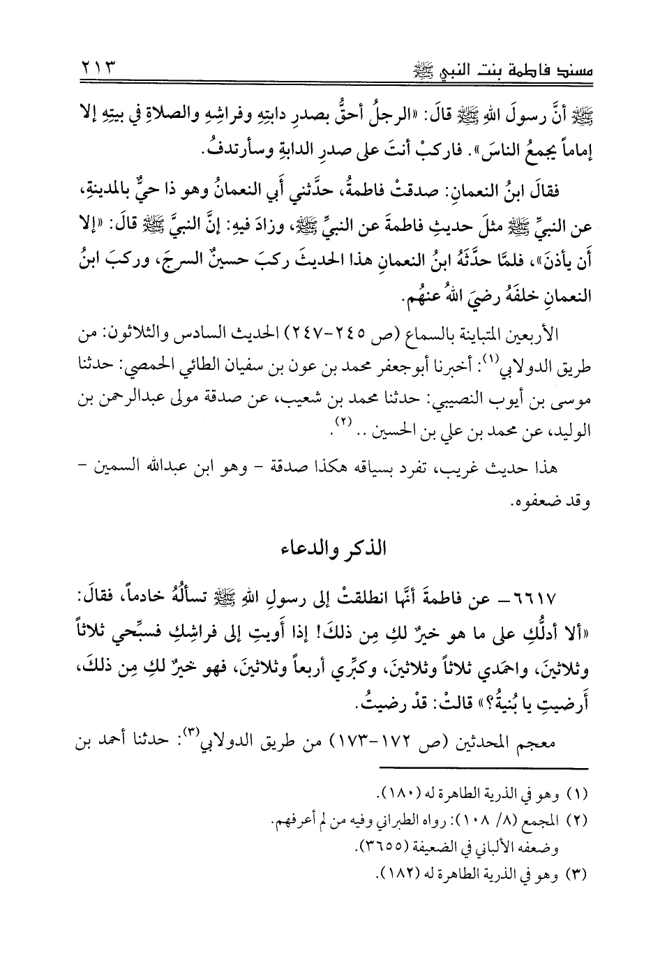 معجم المحدثين (ص 172 - 173) من طريق الدولابي (¬3): حدثنا أحمد بن