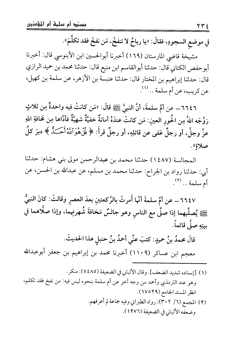المجالسة (1487) حدثنا محمد بن عبدالرحمن مولى بني هشام: حدثنا أبي: حدثنا رواد بن الجراح: حدثنا محمد بن مسلم، عن عبدالله بن الحسن، عن أم سلمة .. (¬2).
