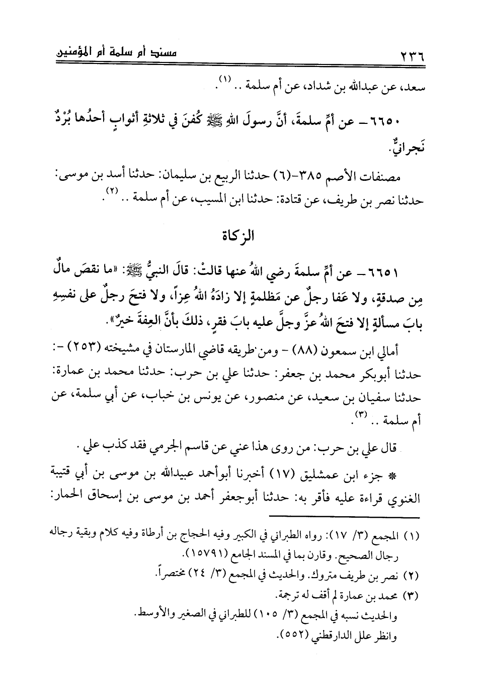 مصنفات الأصم 385 - (6) حدثنا الربيع بن سليمان: حدثنا أسد بن موسى: حدثنا نصر بن طريف، عن قتادة: حدثنا ابن المسيب، عن أم سلمة .. (¬2).