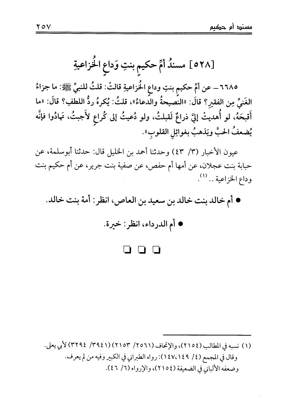 [528] مسندُ أمِّ حكيمٍ بنتِ وَداعٍ الخُزاعيةِ