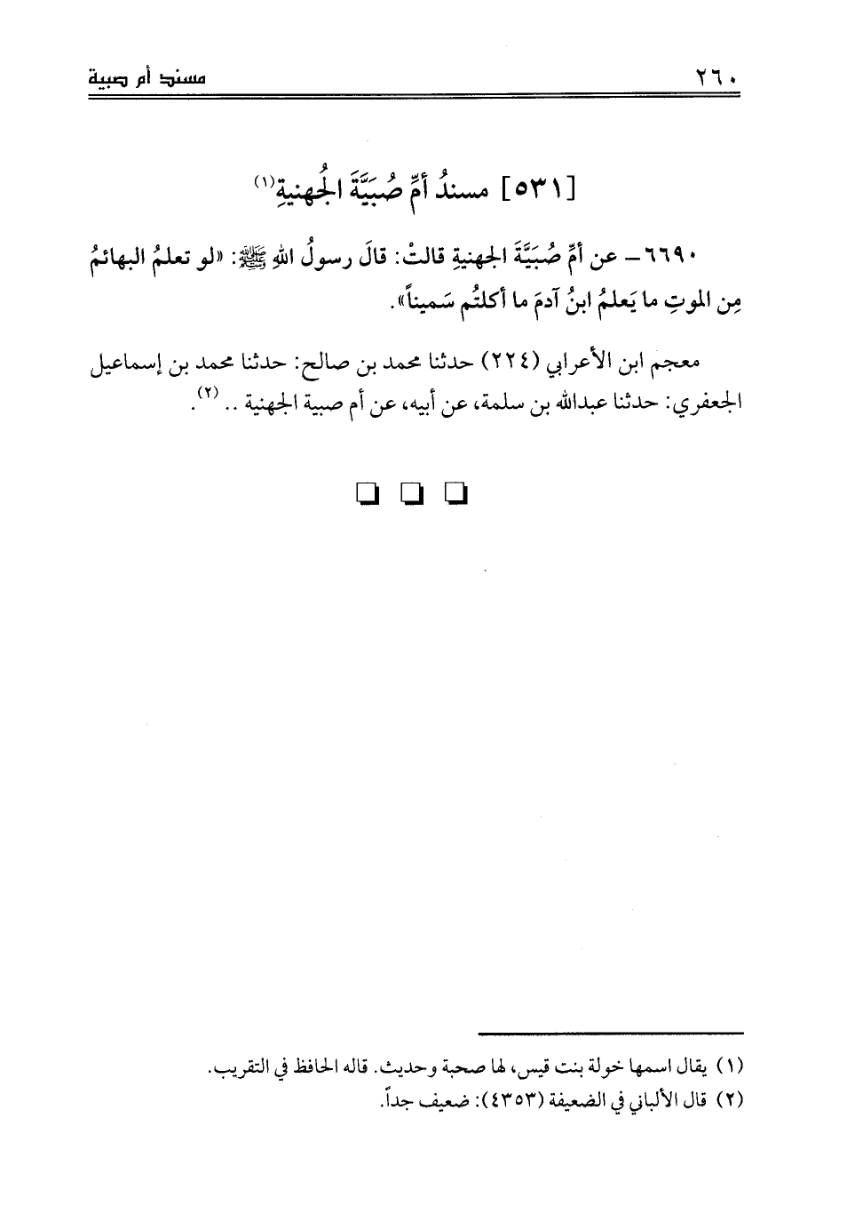 [531] مسندُ أمِّ صُبَيَّةَ الجُهنيةِ (¬1)