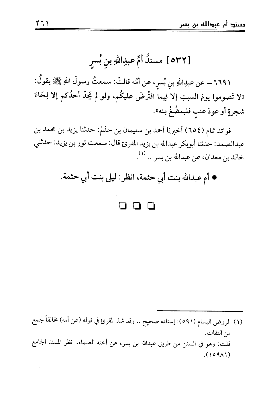 [532] مسندُ أمِّ عبدِاللهِ بنِ بُسرٍ