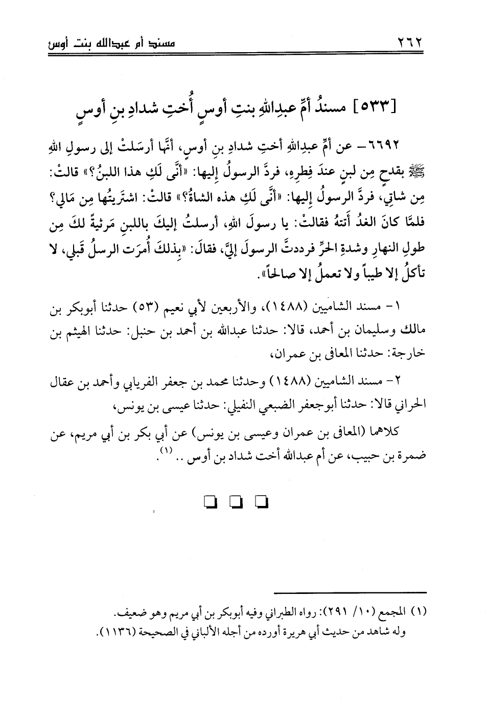 [533] مسندُ أمِّ عبدِاللهِ بنتِ أوسٍ أُختِ شدادِ بنِ أوسٍ