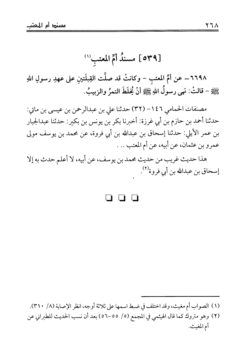 [539] مسندُ أمِّ المعتبِ (¬1)
