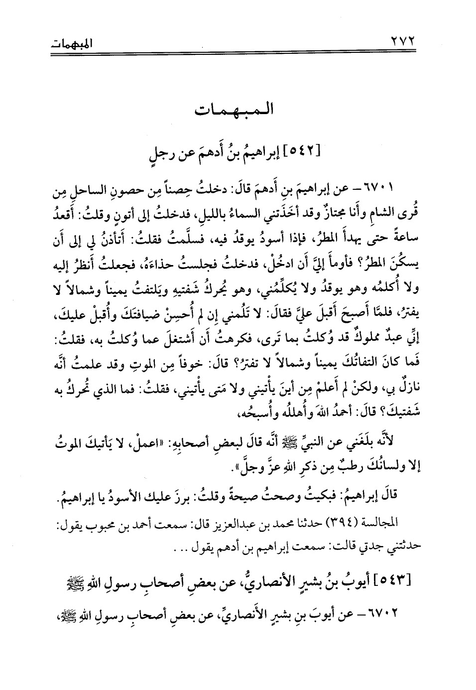 المجالسة (394) حدثنا محمد بن عبدالعزيز قال: سمعت أحمد بن محبوب يقول: حدثتني جدتي قالت: سمعت إبراهيم بن أدهم يقول .. .