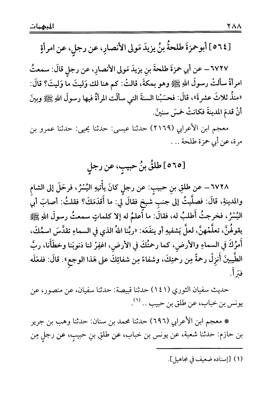 [564] أبوحمزةَ طلحةُ بنُ يزيدَ مَولى الأنصارِ، عن رجلٍ، عن امرأةٍ