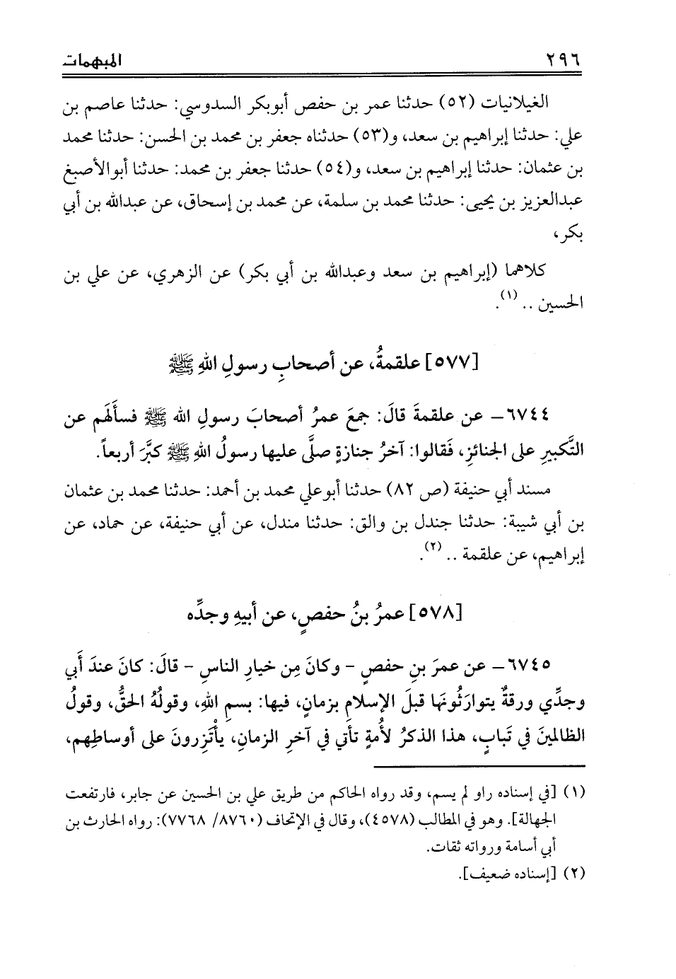 مسند أبي حنيفة (ص 82) حدثنا أبوعلي محمد بن أحمد: حدثنا محمد بن عثمان بن أبي شيبة: حدثنا جندل بن والق: حدثنا مندل، عن أبي حنيفة، عن حماد، عن إبراهيم، عن علقمة .. (¬2).