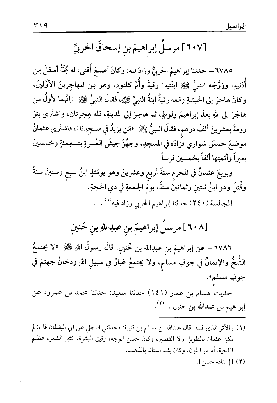 [607] مرسلُ إبراهيمَ بنِ إسحاقَ الحربيِّ
