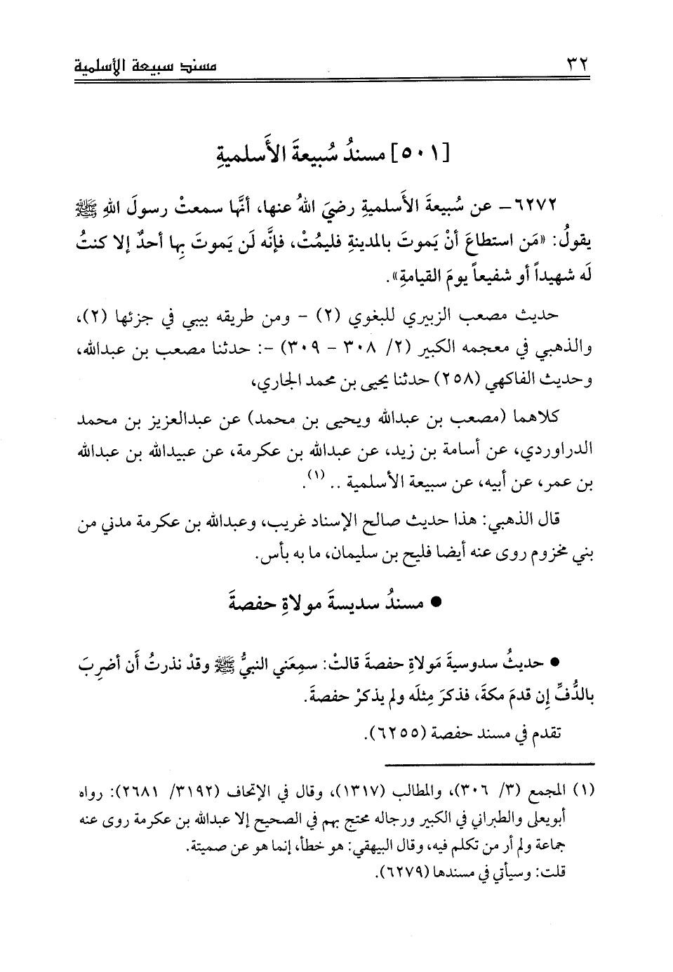 [501] مسندُ سُبيعةَ الأَسلميةِ