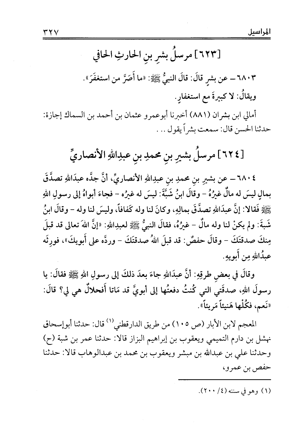 [623] مرسلُ بشرِ بنِ الحارثِ الحافي