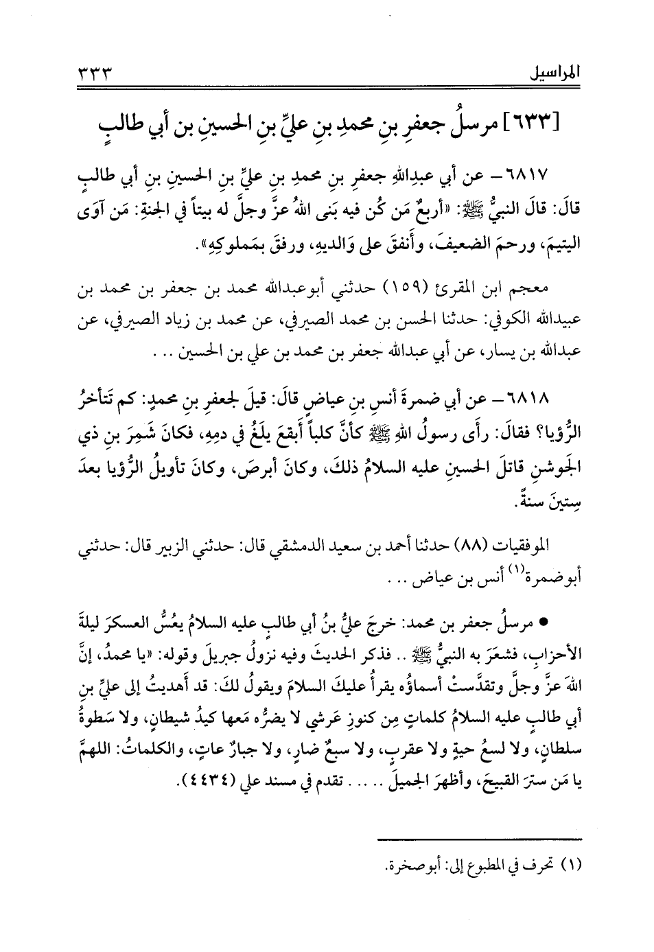 [633] مرسلُ جعفرِ بنِ محمدِ بنِ عليِّ بنِ الحسينِ بن أبي طالبٍ