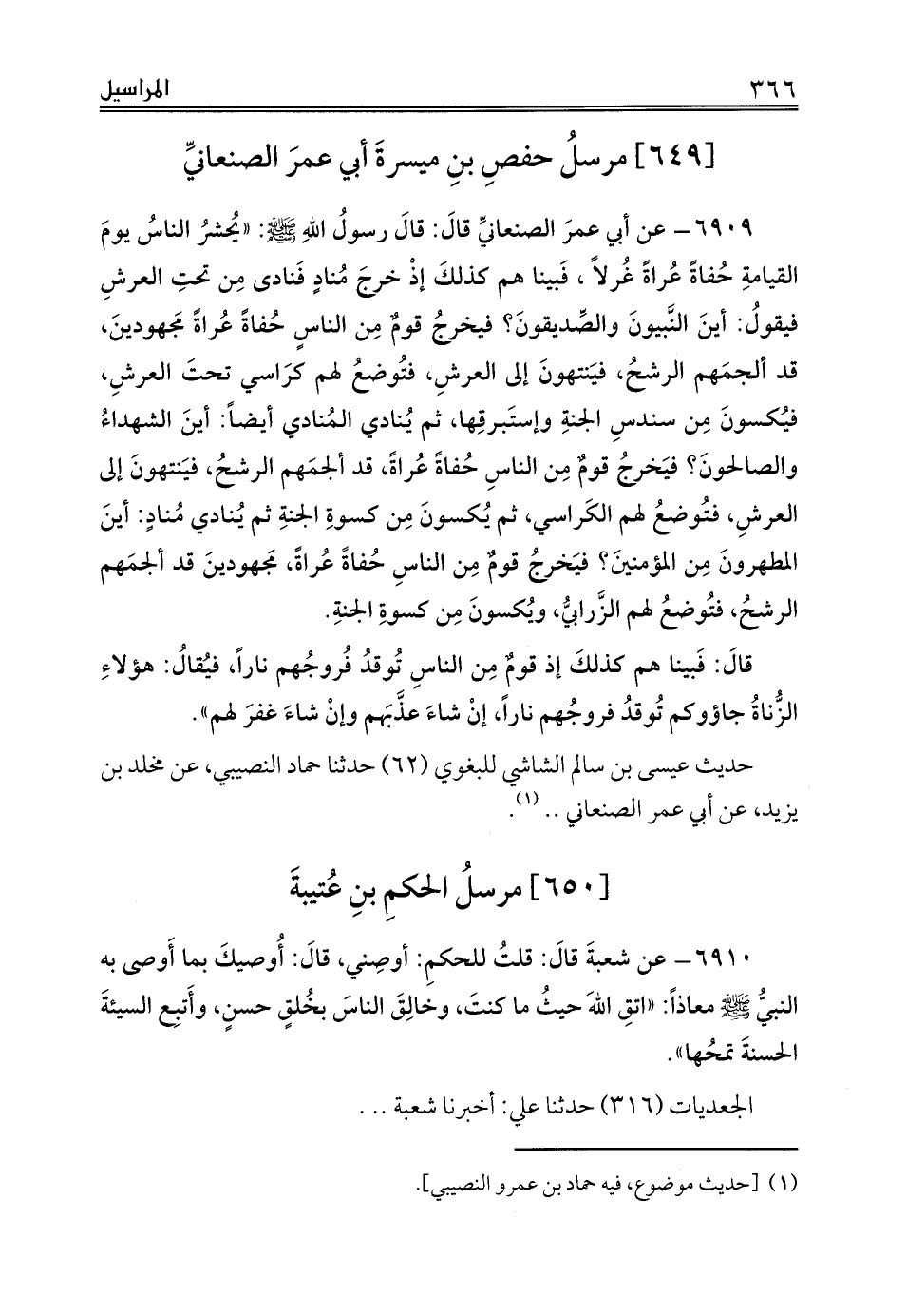 [649] مرسلُ حفصِ بنِ ميسرةَ أبي عمرَ الصنعانيِّ