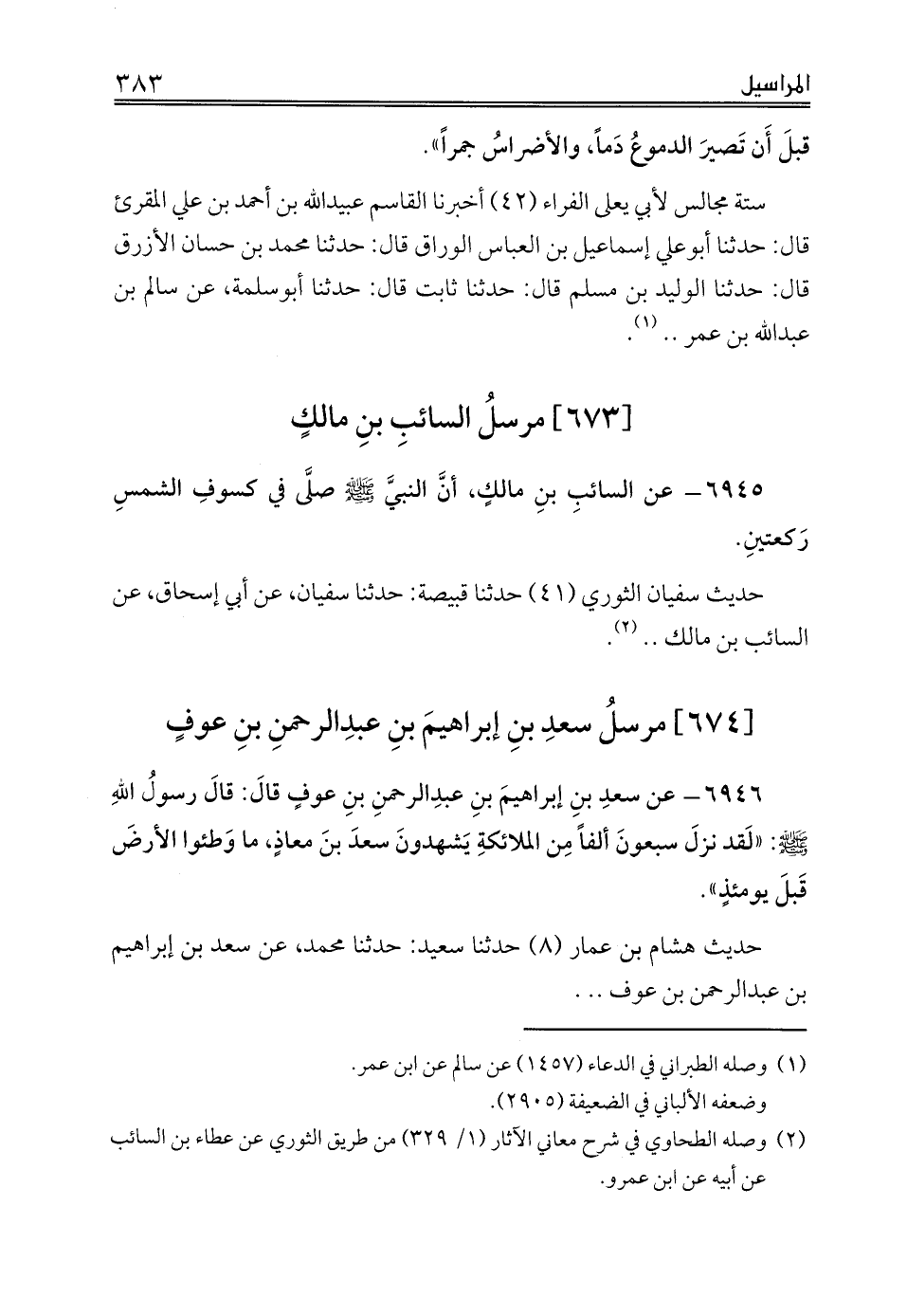 [673] مرسلُ السائبِ بنِ مالكٍ