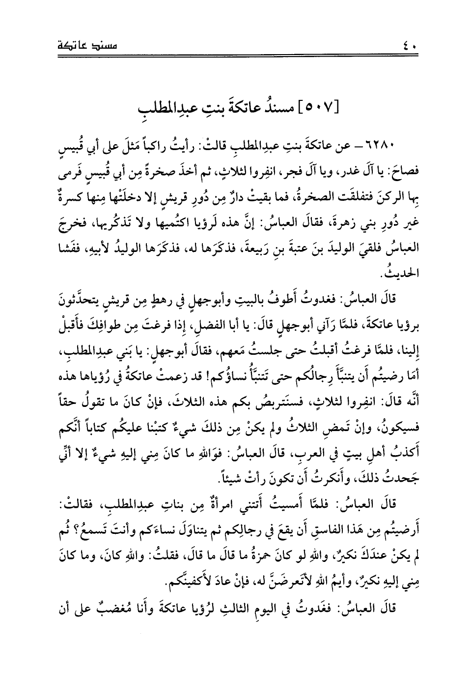[507] مسندُ عاتكةَ بنتِ عبدِالمطلبِ