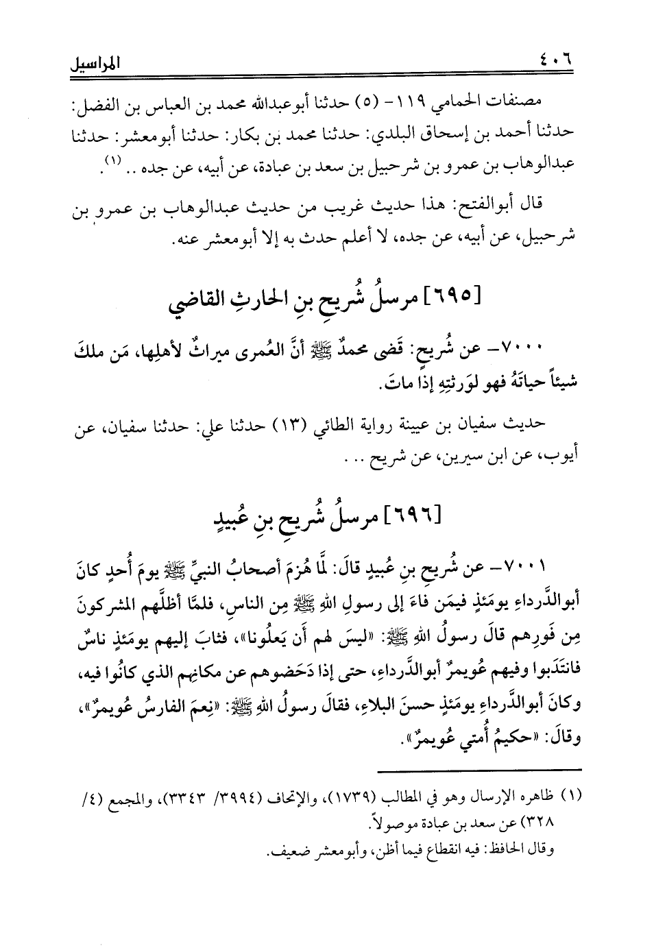 [696] مرسلُ شُريحِ بنِ عُبيدٍ