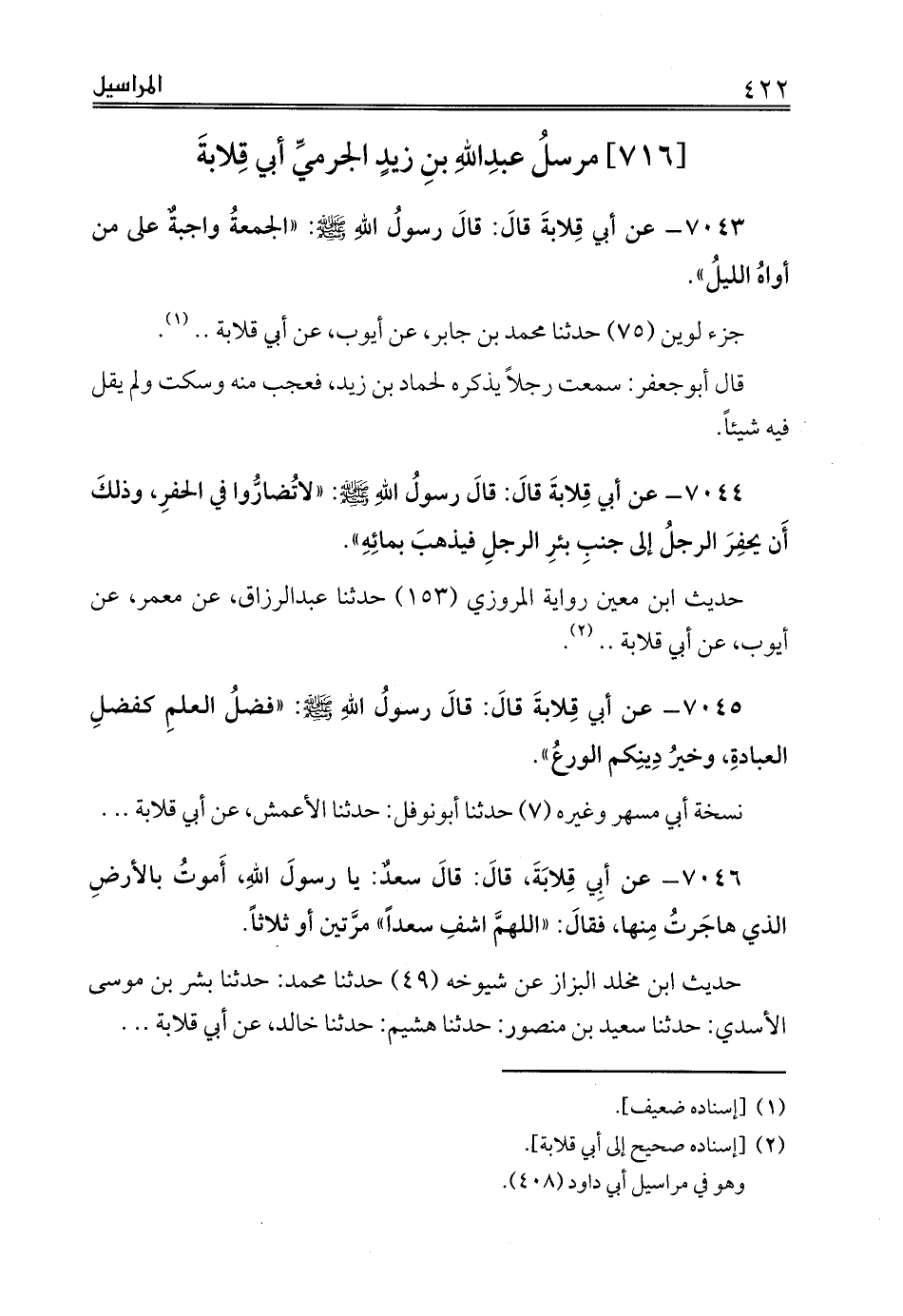 [716] مرسلُ عبدِاللهِ بنِ زيدٍ الجرميِّ أبي قِلابةَ