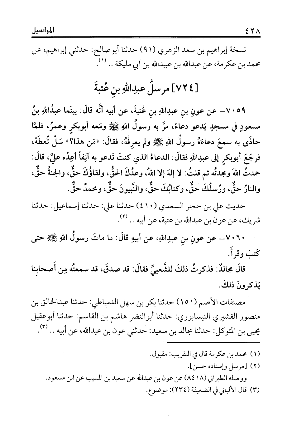 [724] مرسلُ عبدِاللهِ بنِ عُتبةَ