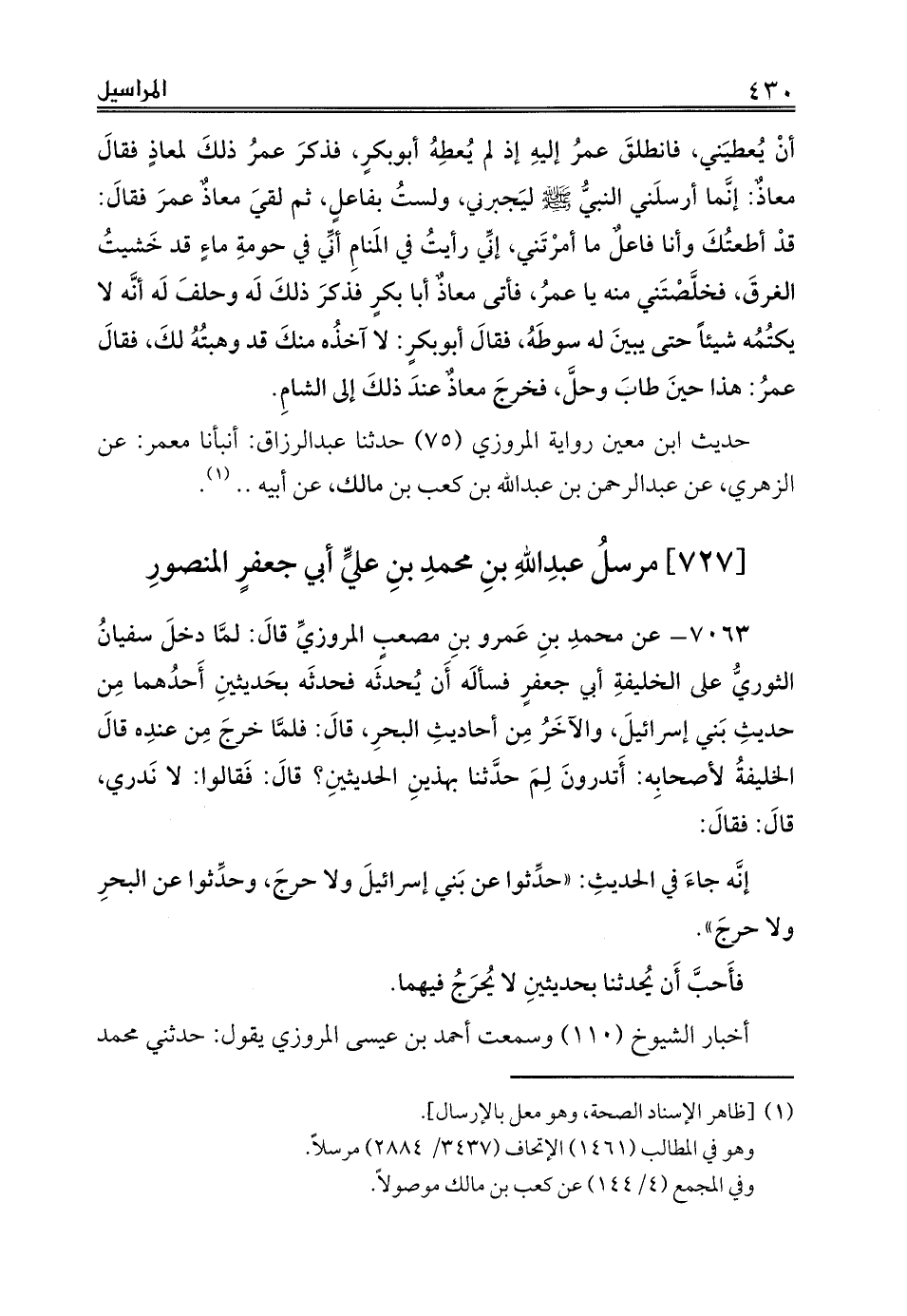 [727] مرسلُ عبدِاللهِ بنِ محمدِ بنِ عليِّ أبي جعفرٍ المنصورِ