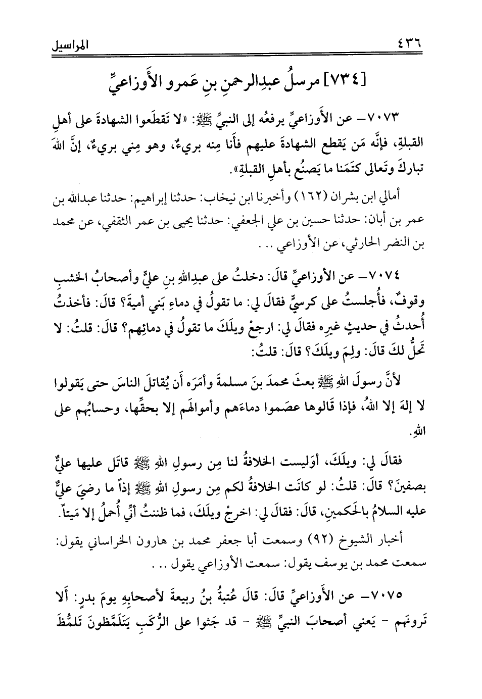 [734] مرسلُ عبدِالرحمنِ بنِ عَمرو الأَوزاعيِّ
