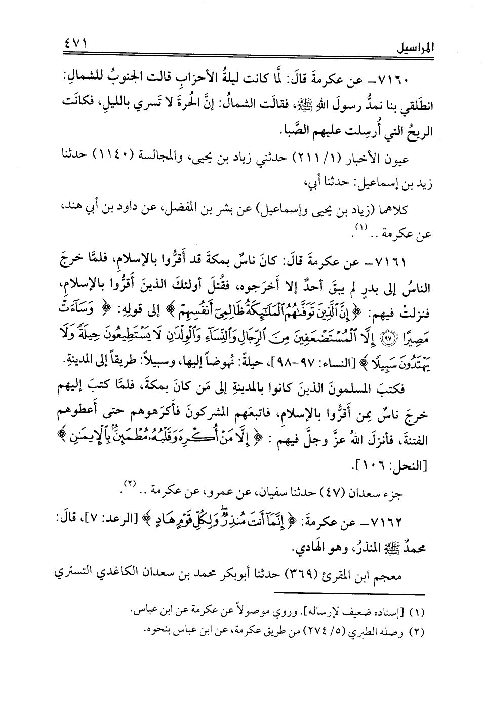 (¬1) [إسناده ضعيف لإرساله]. وروي موصولاً عن عكرمة عن ابن عباس.