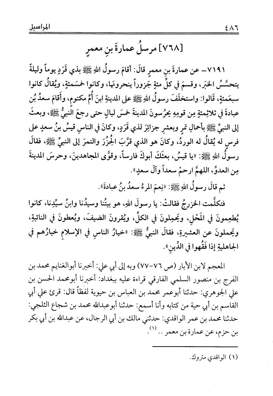 [768] مرسلُ عمارةَ بنِ معمرٍ